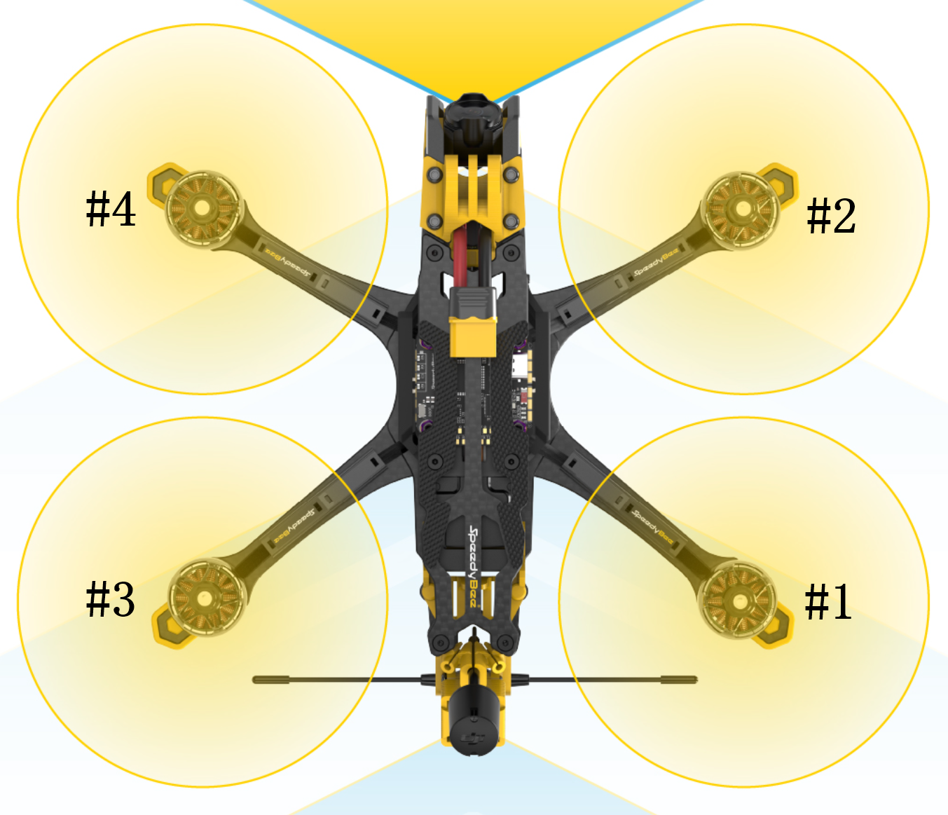 当无人机机头朝前时,电机旋转顺序如下( 旋转电机时请务必取下螺旋桨 )。
